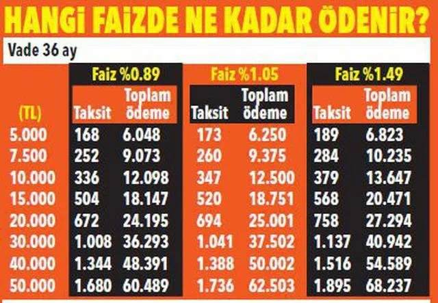 Vade uzadıkça aylık taksit düşer ama toplam ödenen faiz artar.Araç Değerine Göre Kredi Oranı
